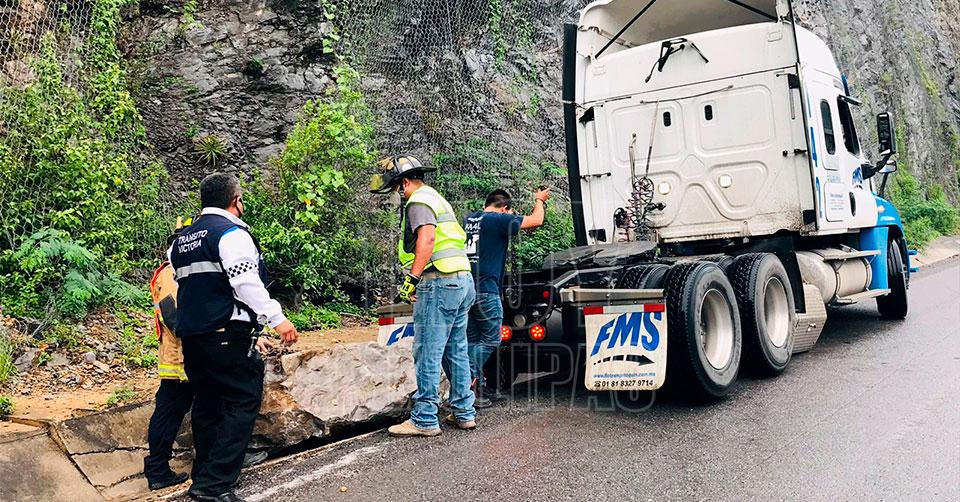 Ciudad Victoria, Tamaulipas. - Esta tarde un derrumbe en el kilómetro 13 de la carretera Rumbo Nuevo provocó la movilización de autoridades de Tránsito local y de Protección Civil del Estado.
