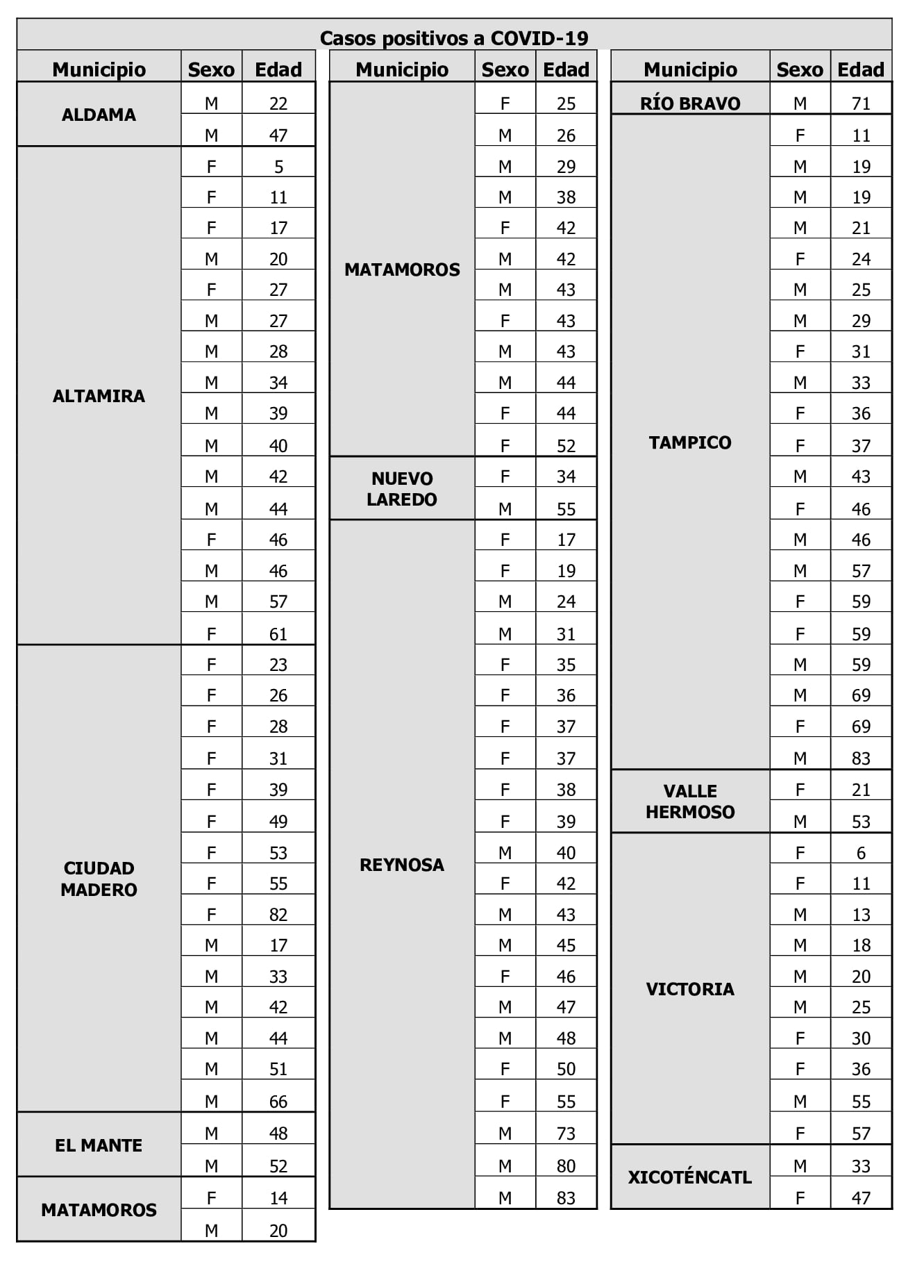 La única muerte registrada por las autoridades sanitarias ocurrió en el municipio de Tampico.