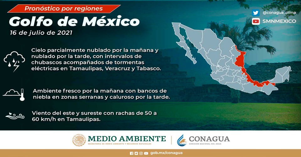 “Las lluvias y los vientos en el sureste mexicano serán provocados por un canal de baja presión que se extenderá sobre la región y la aproximación de una onda tropical a la Península de Yucatán”, versa el reporte del SMN.