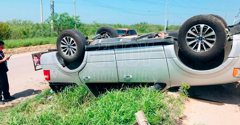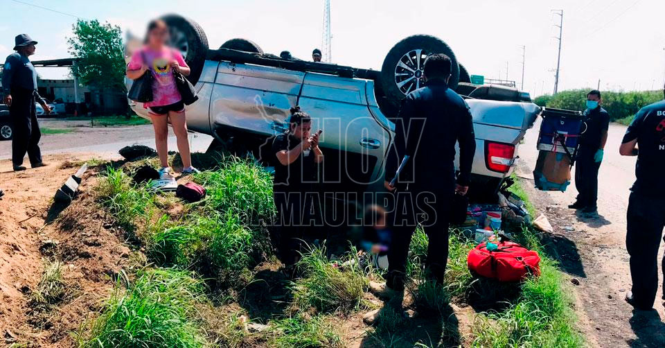 Nuevo Laredo, Tamaulipas. ─ Una familia de paisanos, residentes en el Estado de Texas, salvó la vida de milagro pese a sufrir la volcadura de la camioneta en que viajaban en la carretera a Piedras Negras, en Nuevo Laredo.