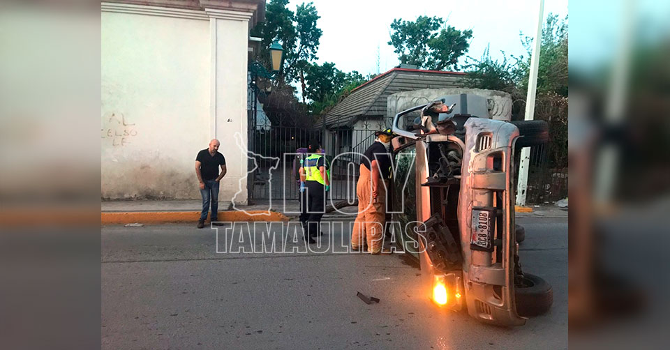 Nuevo Laredo, Tamaulipas. - Una pareja sobrevivió de milagro pese a volcar la camioneta en que viajaban, tras chocar contra una unidad estacionada en calles de la colonia Hidalgo, al norponiente de Nuevo Laredo.