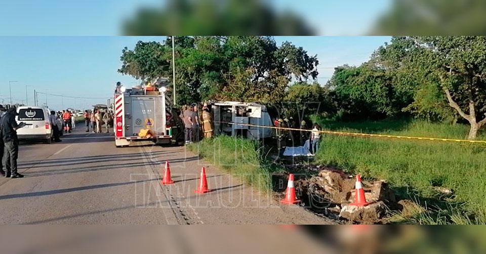 Altamira, Tamaulipas. - Cuatro trabajadores de limpieza murieron al volcar un camión recolector de basura propiedad del Ayuntamiento de Tampico, cuando se desplazaban presuntamente a exceso de velocidad sobre el Bulevar de los Ríos, pasando el Tec de Monterrey.