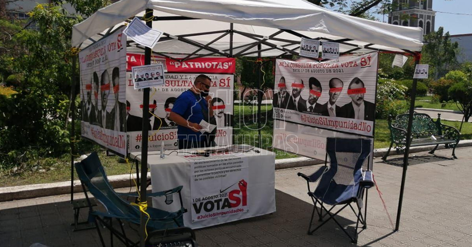"La ciudadanía tiene derecho a pedir justicia contra los ex gobernantes de México, y es por eso que estamos instalando un módulo para invitar a la ciudadanía a votar este primero de agosto", comentó.