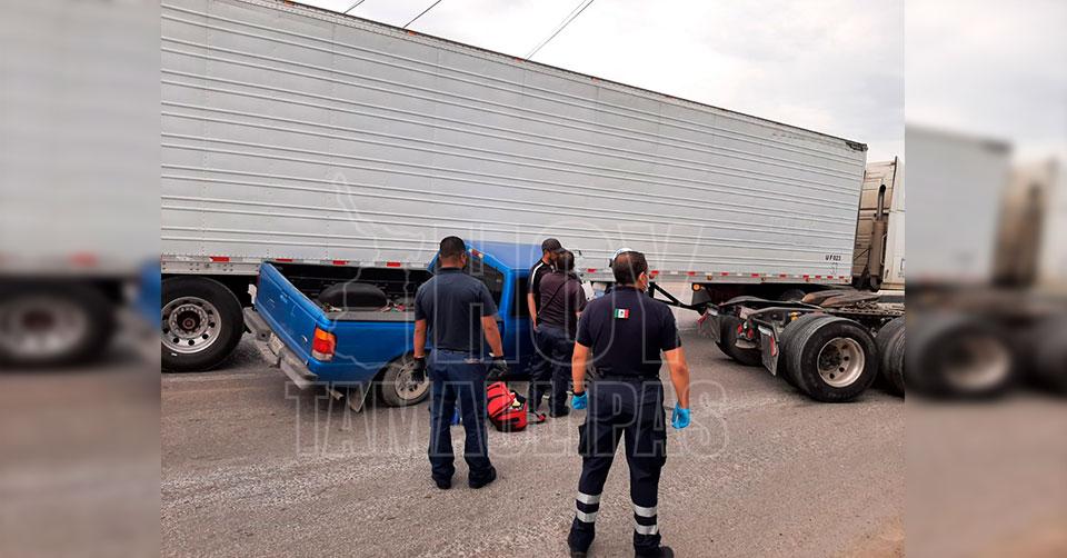 Queda prensado tras estrellarse contra caja de tráiler en Nuevo Laredo