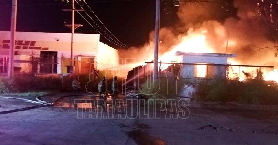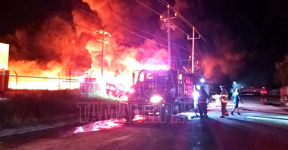 Reynosa, Tamaulipas. - Un voraz incendio en la planta recicladora Merco Mex se registra en estos momentos, en el Parque Industrial Reynosa.
