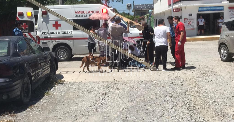 Ciudad Victoria, Tamaulipas. – Un comerciante resultó con un fuerte golpe y probable fractura en una de sus extremidades, luego de caer de una altura de tres metros al no colocar correctamente una escalera.