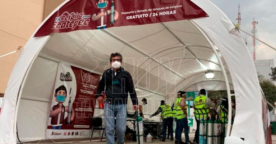 Ecatepec, Edomex. -Ante el incremento de contagios por la tercera ola de Covid-19, el gobierno local reactivó el programa “Un Respiro para Ecatepec”, que consiste en el préstamo y rellenado de tanques de oxígeno para afectados por esta enfermedad y cuyo médico ordenó tratamiento con oxígeno medicinal.