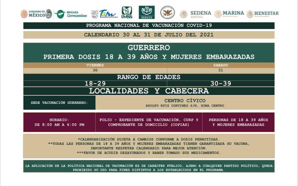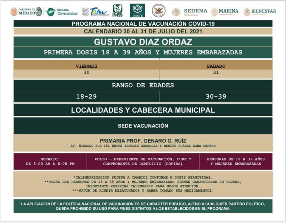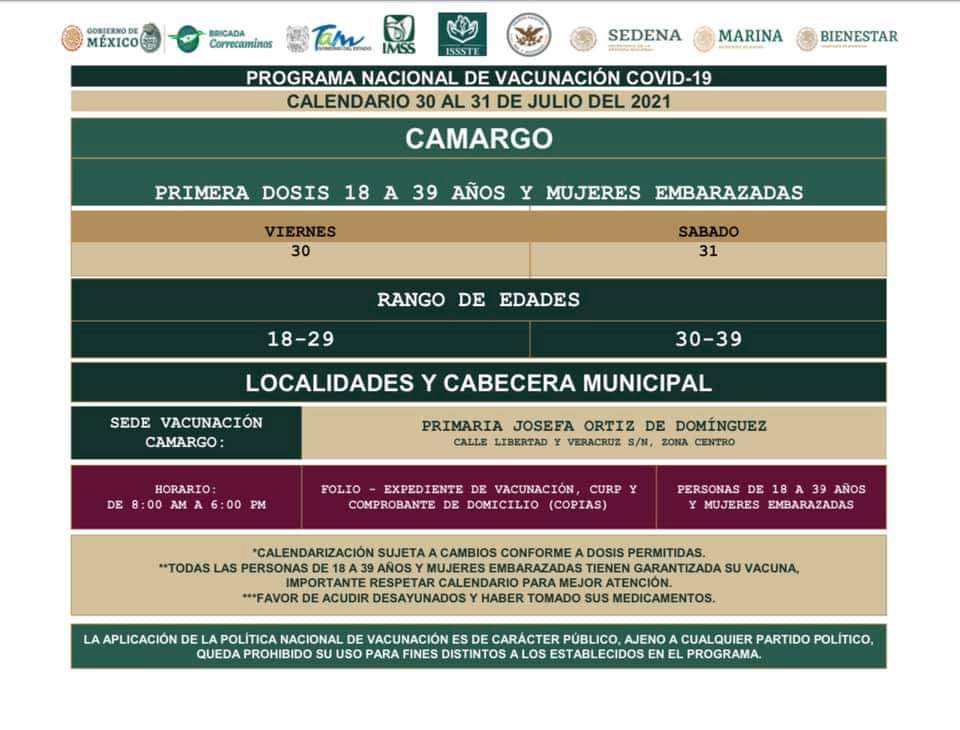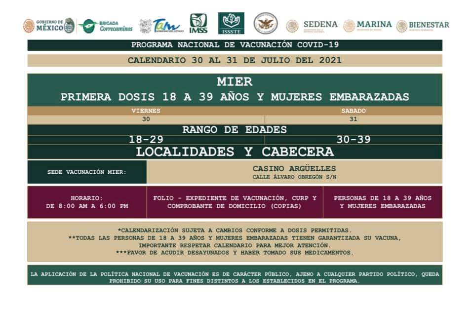 Recordó que deberán llevar una copia de su CURP y un comprobante de domicilio, presentar el comprobante de vacunación de la primera dosis. Así como el expediente de vacunación que pueden obtener en la pág https://mivacuna.salud.gob.mx/index.php