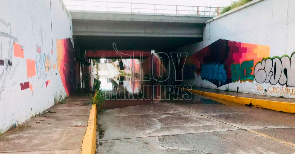 Cierran paso a desnivel de Ciudad Victoria por inundación
