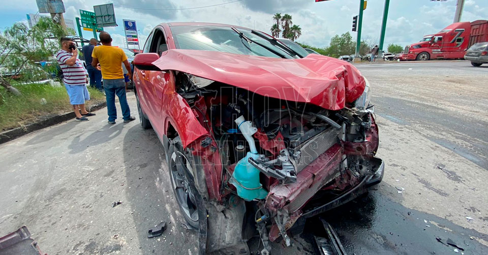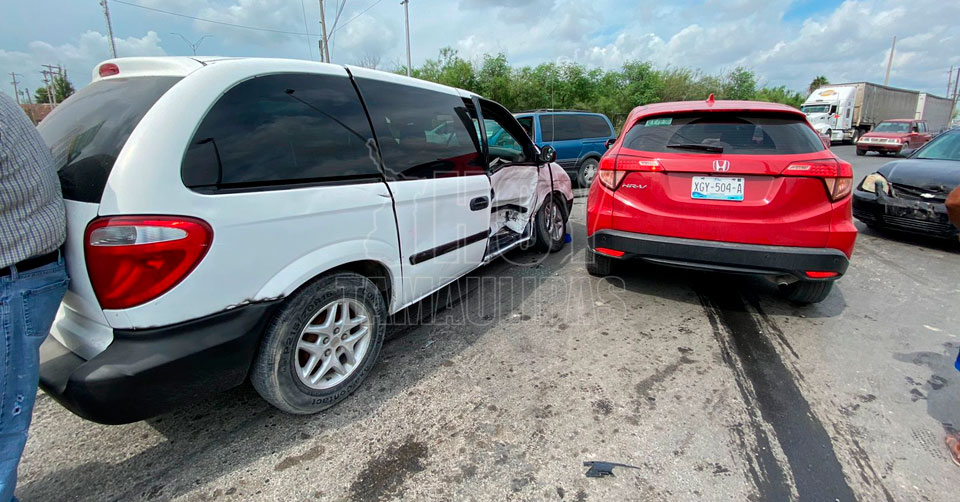Matamoros, Tamaulipas. - Una fuerte carambola vehicular entre tres vehículos ocurrió la mañana de este jueves en Matamoros, dejando un saldo de dos lesionados y cuantiosos daños materiales.