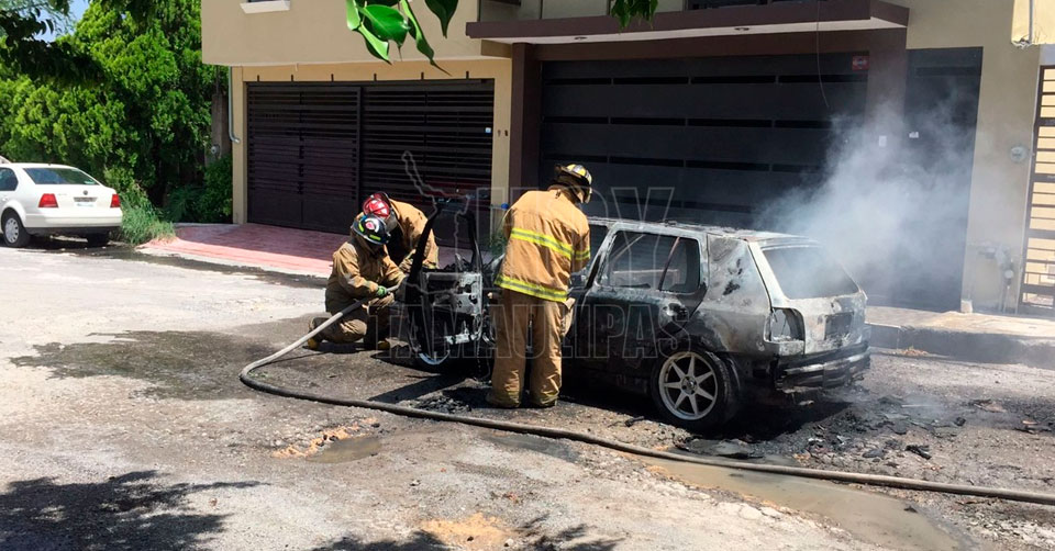 Ciudad Victoria, Tamaulipas. - Elementos de H. Cuerpo de Bomberos de Ciudad Victoria tardaron más de media hora en llegar a un incendio de carro, al que las llamas terminaron por reducir a cenizas.