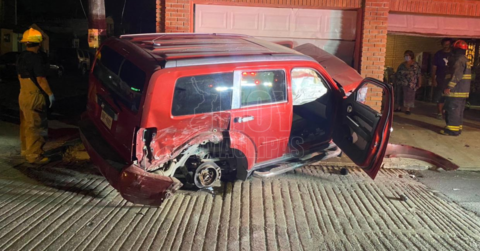 Del brutal impacto, la camioneta de las mujeres se proyectó hacia una vivienda y dañó una barda y un portón eléctrico.