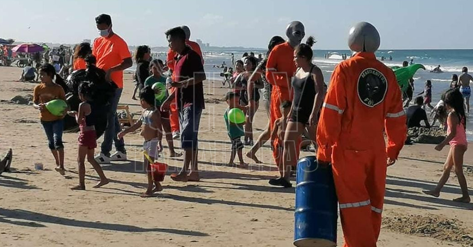 Los turistas que disfrutan de sol, arena y mar, se vieron sorprendidos por estos alienígenas.