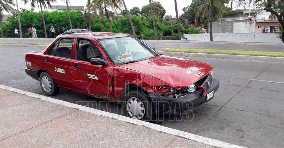 Tampico, Tamaulipas. - Una familia integrada por cinco personas resultó lesionada al ser chocado el carro de ruta en el que se desplazaban, por un vehículo particular.