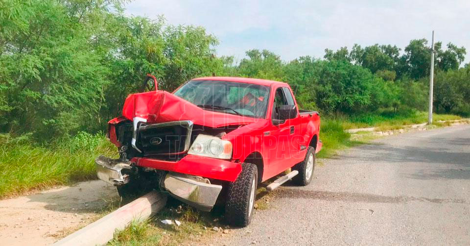Ebrio conductor se “ensarta” con poste de concreto en Ciudad Victoria