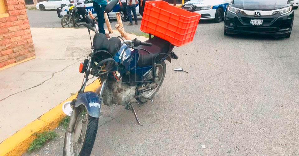 El motociclista empleado de una refaccionaria transportaba un bote de grasa, el cual quedó derramado en el interior del vehículo Honda.