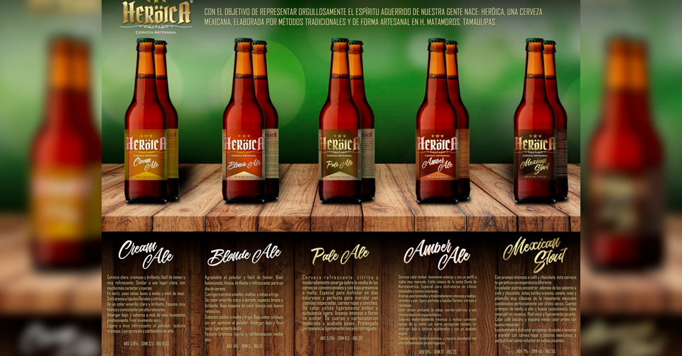 La cerveza artesanal Heröica inició su historia en Matamoros en el año 2013 caracterizándose por su exquisito sabor con el que logró la Medalla de Plata en competencia internacional Aro Rojo 2018 con la variedad Heröica Mexican Stout, con aroma intenso de café, canela, piloncillo y chocolate con la que garantiza una experiencia muy mexicana.