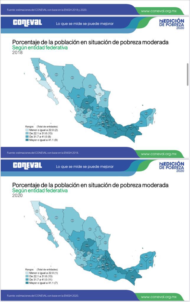 La información revela que la población vulnerable por carencias sociales se redujo en un 2.2 por ciento. Además, la medición de personas que han quedado en vulnerabilidad por ingresos se redujo 5 puntos.