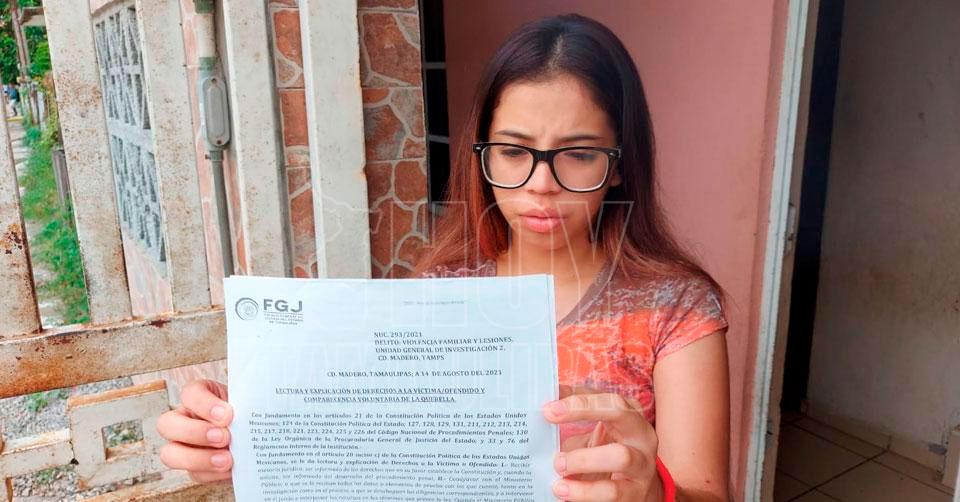 "Alexis Iván se retiró y a los pocos minutos regresó a agredir verbalmente a su padre y después se fue en contra de ella, golpeándola, pateándola y diciéndole que la iba a matar nadie lo detuvo, ni hablaron a las autoridades", declaró.