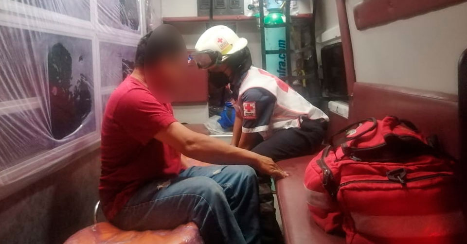 El motociclista resultó con escoriaciones en el cuello y golpes contusos tras caer al suelo, por lo que fue llevado a un hospital de la zona.