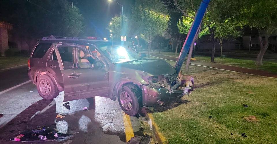Se impacta contra arbotante y abandona vehículo en Nuevo Laredo