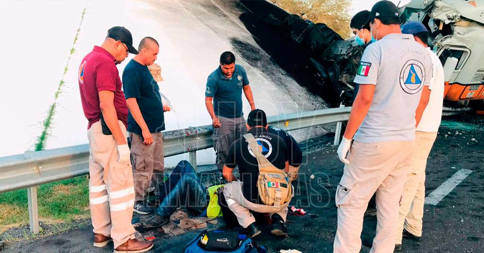El accidente, que dejó además cuantiosos daños materiales, ocurrió cuando un tráiler tipo caja cerrada circulaba por la carretera Victoria-Zaragoza en sentido de norte a sur.
