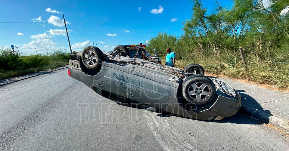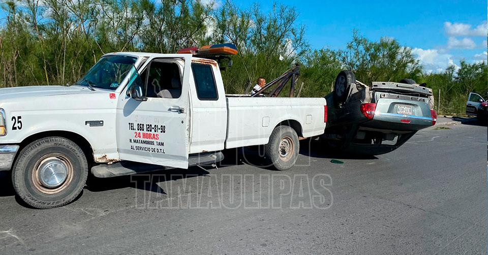 Matamoros, Tamaulipas. - Una volcadura se registró la tarde de este martes en Matamoros, donde afortunadamente no hubo personas lesionadas, únicamente daños materiales.
