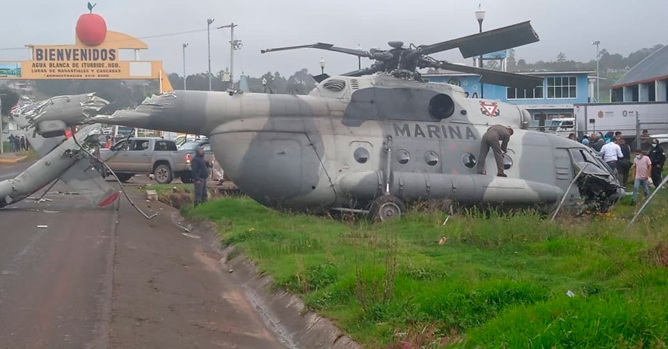 Un helicóptero de la Secretaría de Marina de México se desplomó en el municipio de Agua Blanca, Hidalgo y varios tripulantes resultaron lesionados