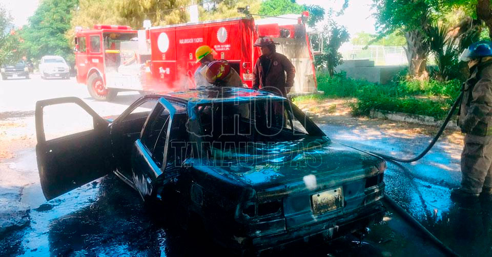 El siniestro movilizó a los elementos del Cuerpo de Bomberos, quienes lograron controlar el fuego, pero las llamas ya habían consumido en su totalidad a un Nissan Tsuru habilitado como taxi.