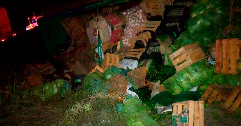 Rapiñan toneladas de fruta y verdura tras volcadura de tráiler en la Rumbo Nuevo