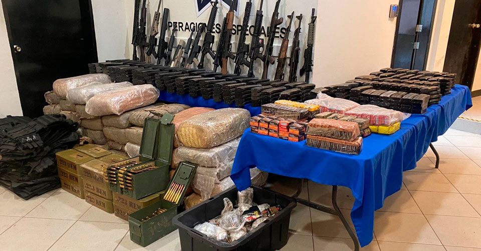 El tres de septiembre, en Miguel Alemán, personal del Grupo de Operaciones Especiales aseguró varios paquetes embalados con hierba cuyas características son de marihuana, con peso de 191 kilogramos, así como 20 armas, 422 cargadores, 16 mil 621 cartuchos útiles y 29 chalecos tácticos.