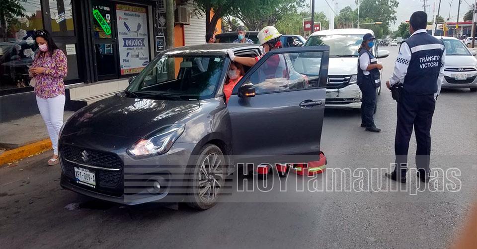 Ciudad Victoria, Tamaulipas. - Una mujer resultó lesionada luego de ser impactada en la parte trasera de su vehículo, por un conductor de una camioneta que se distrajo presuntamente por voltear a ver a una dama que caminaba en la calle.