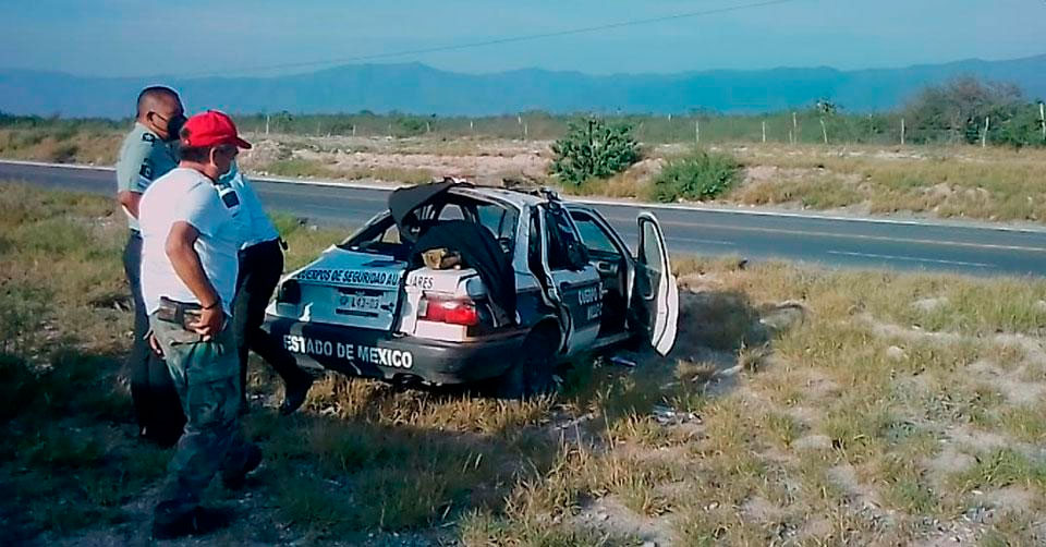 Jaumave, Tamaulipas. – Un elemento de la Secretaría de Seguridad del Estado de México resultó lesionado esta mañana tras volcar el vehículo que conducía sobre la carretera federal Tula-Victoria, a la altura del kilómetro 126+100.