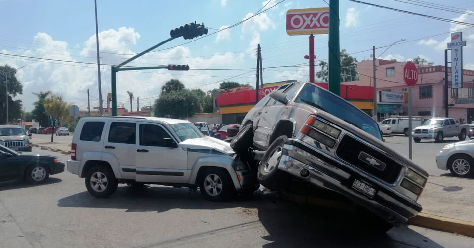 Matamoros, Tamaulipas. - Un choque entre dos camionetas se registró este miércoles en Matamoros, dejando como saldo cuantiosos daños materiales.