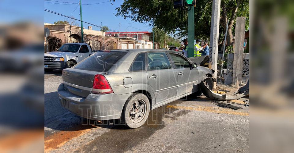Nuevo Laredo, Tamaulipas. - Una camioneta terminó sobre uno de sus costados, luego de que el conductor de un automóvil la embistió de lleno en un crucero de la colonia Hidalgo, en el sector poniente de Nuevo Laredo.