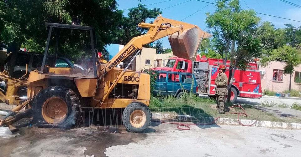 Se incendia trascabo y Bomberos Altamira evitan que quede calcinada