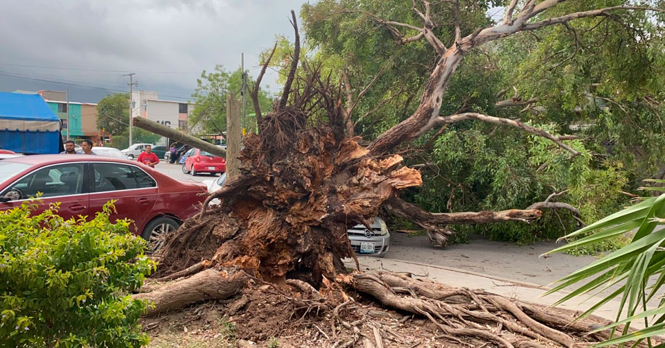 Ciudad Victoria, Tamaulipas. - Un árbol de más de 50 años, cayó sobre dos vehículos en Ciudad Victoria.