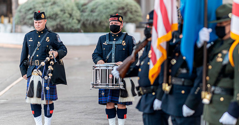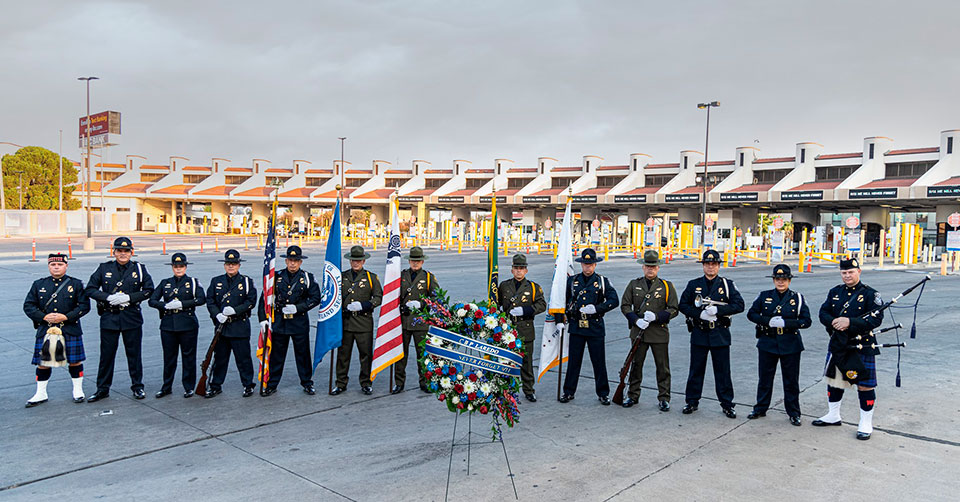 Una corneta entonó grifos y el oficial de CBP cantó Amazing Grace.