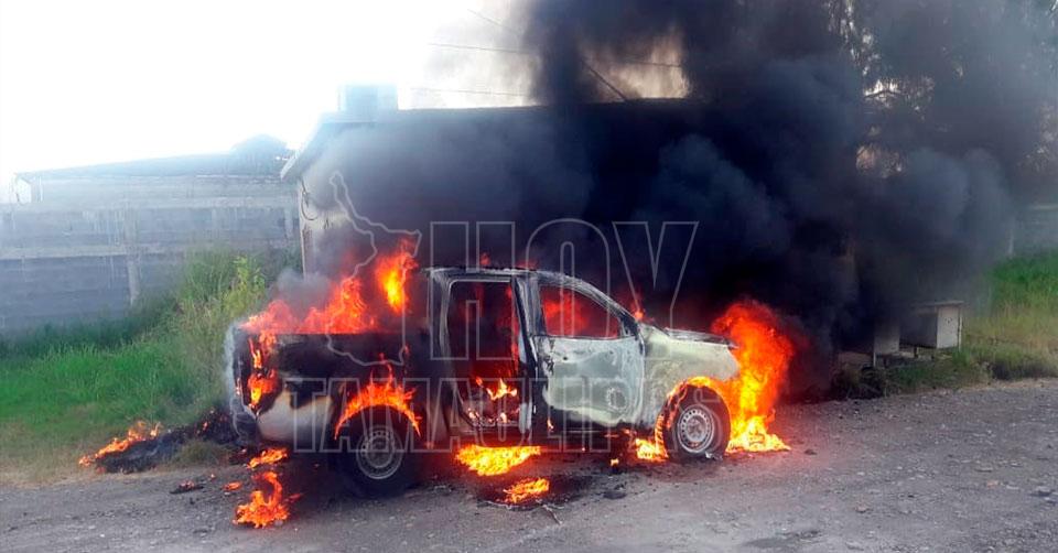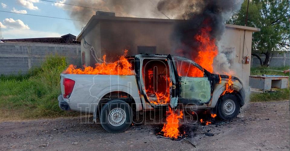 Fuego acaba con camioneta en Camargo, Tamaulipas