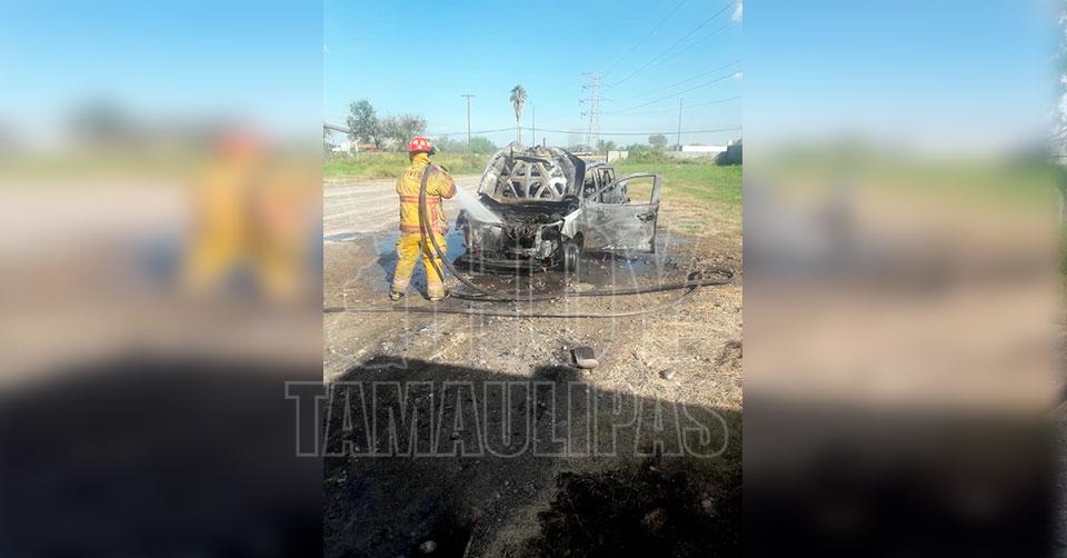 Camargo, Tamaulipas. - Un incendio arrasó con una camioneta Ford Ranger esta tarde, en el kilómetro 1+500 de la carretera que conduce al Puente Internacional en Camargo, Tamaulipas.