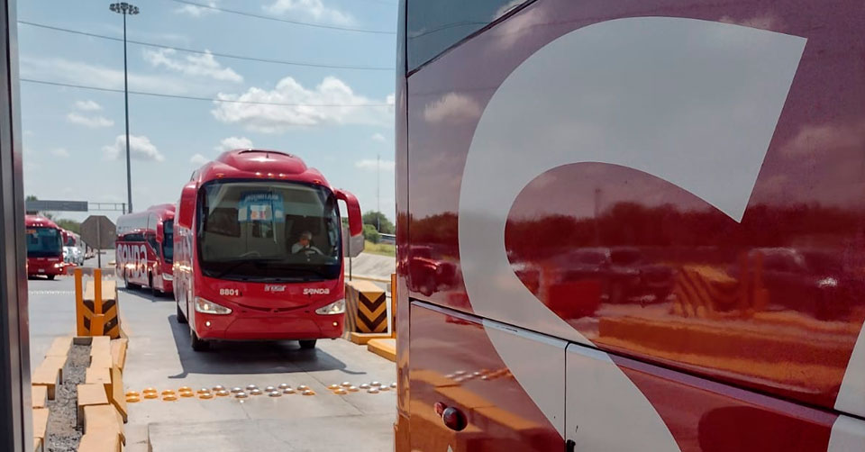 Samuel García iba acompañado de su esposa Mariana Rodríguez y a ambos se les vio en las escalinatas del autobús, en el momento en que arribaron a las casetas de peaje del lado mexicano.