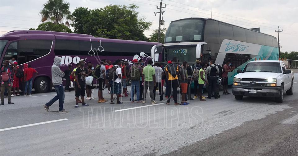 Altamira, Tamaulipas.- Un grupo de migrantes haitianos bloqueó la carretera Tampico-Mante en el municipio de Altamira, debido a que elementos del Instituto Nacional de Migración los quiso bajar de dos autobuses.