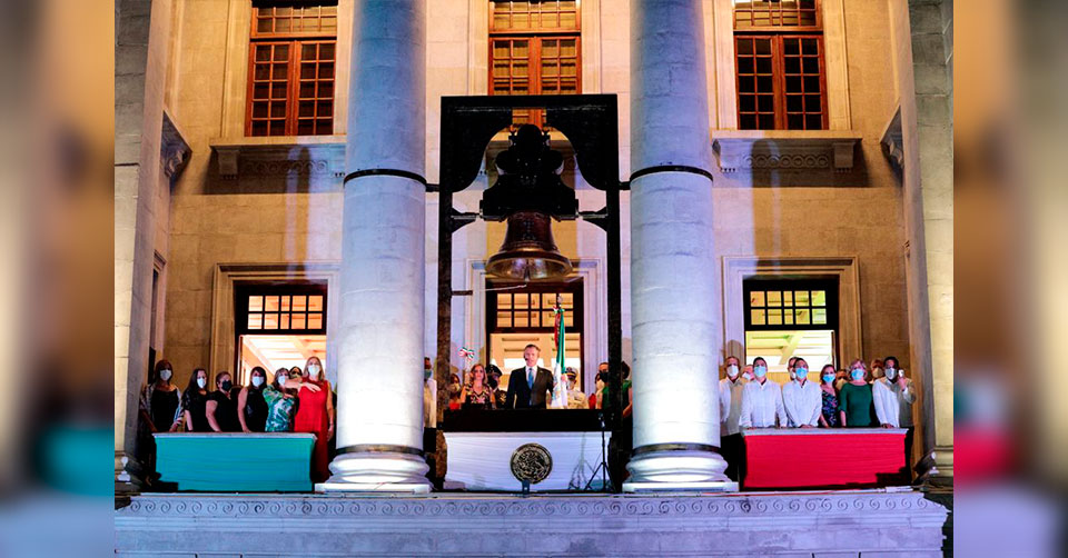 Ante representantes de las fuerzas navales y militares, miembros del Cabildo y un reducido número de invitados, y tras recibir el lábaro patrio por parte de la escolta perteneciente al Quinceavo Batallón de Infantería, en punto de las 23:30 horas, el jefe de la comuna se dirigió al balcón principal del Palacio Municipal para vitorear a los héroes de independencia, ondear la bandera nacional y tañer la campana, tal como lo hiciera en 1810 el cura Miguel Hidalgo y Costilla.