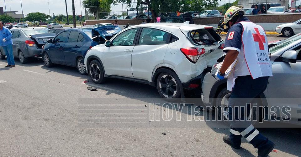 Ciudad Victoria, Tamaulipas. - Seis personas, entre ellas un bebé, resultaron lesionados en una carambola en la que participaron cuatro vehículos al norte de la capital de Tamaulipas.