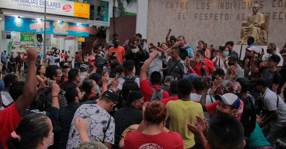 Desde el Parque Benito Juárez, lugar donde se tenía el ayuno por la libertad, los migrantes se mantienen en incertidumbre ya que no los dejan salir de esta ciudad fronteriza con Guatemala.
