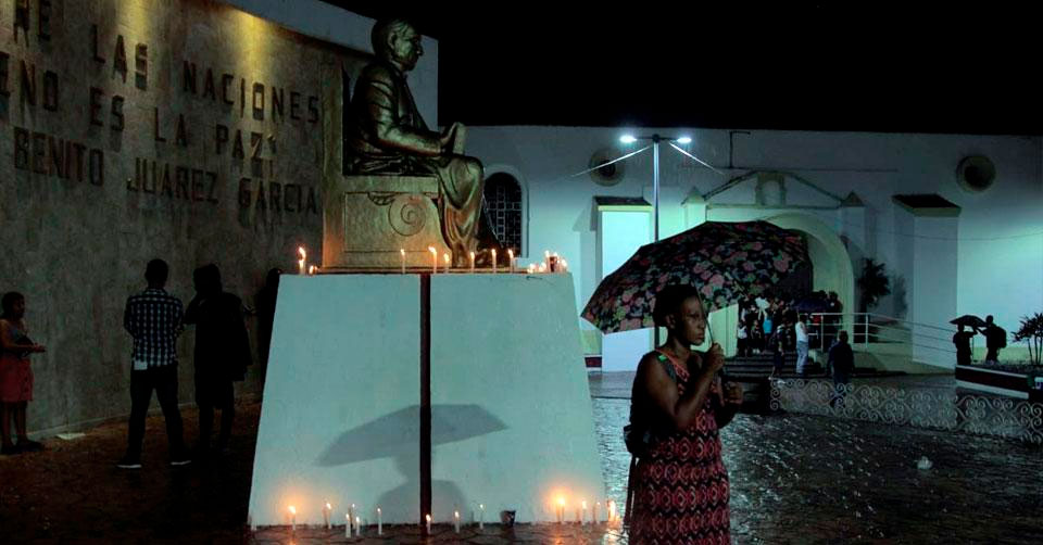 Migrantes rezan para pedir libre tránsito en México; encienden veladoras