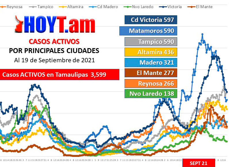 Tres más en Padilla y Ocampo, dos en Miguel Alemán, Camargo, Güémez, Hidalgo, Díaz Ordaz, San Carlos, Bustamante y Miquihuana y un caso en el municipio de Casas.