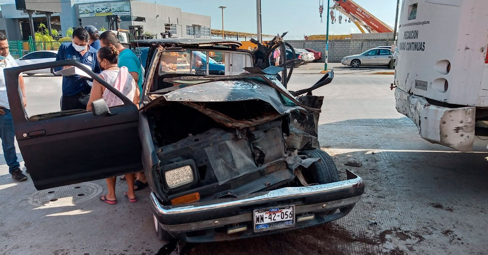 Choca “troca” por detrás a "bus" y conductor queda prensado, ocurrió en Altamira