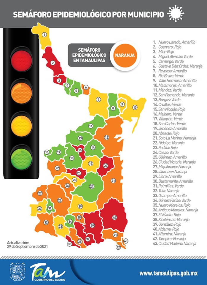 Respecto a la ocupación hospitalaria en Tamaulipas para este día se presenta de la siguiente manera: 35% en los hospitales de la Secretaria de Salud, 44% en el hospital Regional de Alta Especialidad, 55% en los hospitales del IMSS y 58% de ocupación en los hospitales del ISSSTE. Con una ocupación de todo el sector del 45%.