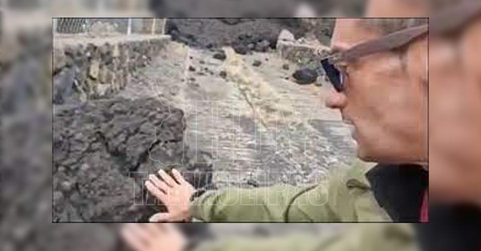 "Así se comporta un... imprudente... (por no usar otro término menos amable). Sube un 'video-selfie' a redes y comparte cómo se le cae delante una gran roca de magma procedente de la colada de lava. Se acerca, la toca y dice... "ufff está super caliente".